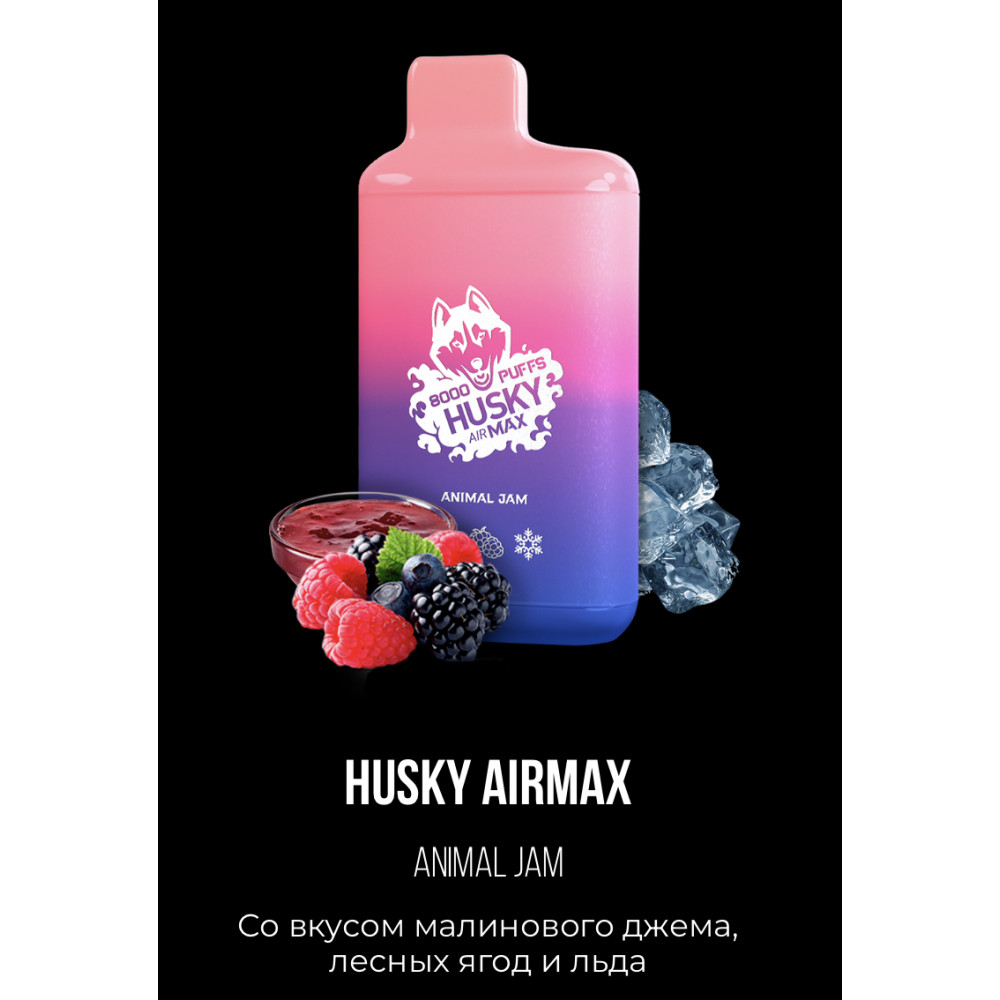 Электронная сигарета Хаски Аир Макс Малиновый Джем Лесные Ягоды со Льдом (Husky Airmax Animal Jam)