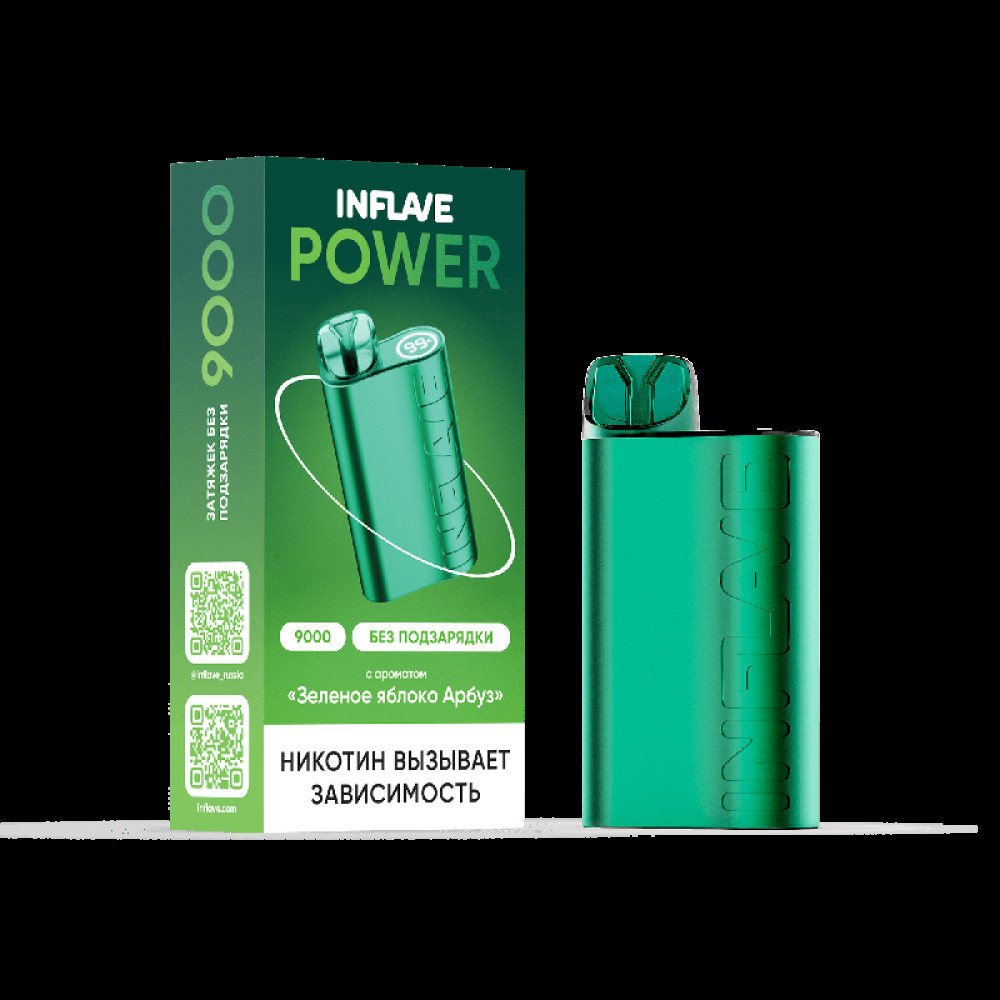 Электронная сигарета INFLAVE POWER 9000 затяжек Зеленое Яблоко Арбуз - купить в Кургане